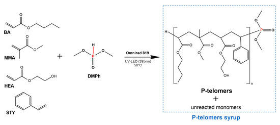 - Kraśkiewicz, A.; Kowalczyk, A. Phosphorus-Containing Telomers as UV-Curable Binders of Solvent-Free Varnish Coatings. Materials 2022, 15, 8991. [Google Scholar] [CrossRef] [PubMed]