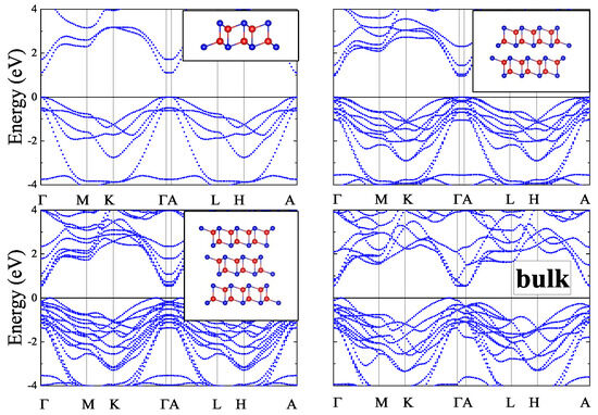 In addition to the band structures, partial densities of states were calculated for all the slabs under study. The calculated PDOS for