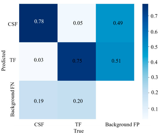 FP: The model predicts CSF, the label value is TF, and the detection result is incorrect;
