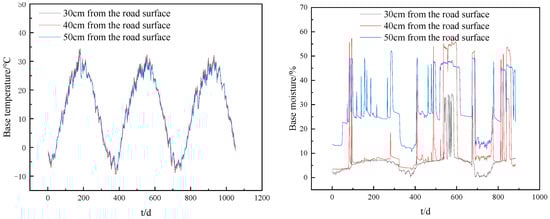 Variation laws of temperature and humidity of pavement base layer year by year.
