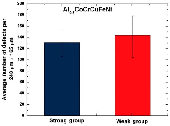 The column charts display the average defect counts for both the strong and weak groups [69].