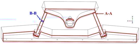 A cross-section of the tundish was created for comprehensive study in order to better explain the distribution of magnetism and temperature in the tundish. A schematic diagram of different sections in the tundish is shown in Figure 6, where section B-B is located in the middle of the core in the XZ direction. Section A-A is the section of the channel’s center, a section with an upward angle of 3°.