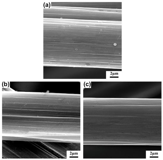 SEM images of (a) unsized, (b) Al2O3, and (c) TiO2 sol-coated CF after calcination at 735 °C for 60 min, respectively. Reproduced from [49] with permission of the publisher (Elsevier).