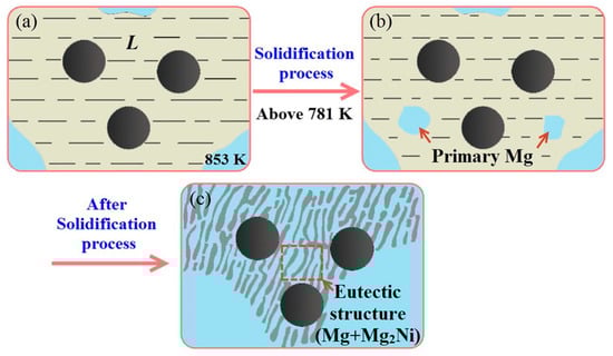 With the gradual improvement in energy conservation and environmental protection requirements, lightweight materials are receiving increasing attention. As the lightest structural materials, magnesium (Mg) alloys have been extensively studied in recent years. Because of their superior properties, such as castability and machinability, Mg-based materials have been widely employed in the aerospace, automobile, biomedicine, and other industries [1,2,3,4]. However, there are still many limitations, such as low ductility, low elastic modulus, and poor corrosion resistance, which hinder the broad application of Mg alloys [5,6,7]. In order to improve the mechanical properties of Mg alloys, there are usually two methods used: the addition of alloying elements [8,9,10] or the introduction of reinforcements [11]. In particular, due to the various excellent properties brought by the rich variety of reinforcements, Magnesium matrix composites (MMCs) have been extensively investigated [5,12].