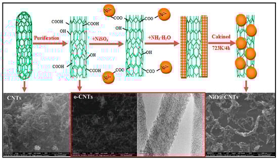 Schematic illustration of preparation of NiO-coated CNTs. Reproduced from [94] with permission of the publisher (Elsevier).