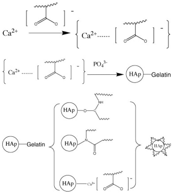 Proposed reaction routes for coating gelatin on HAp nanorods. Reproduced from [135] with permission of the publisher (Elsevier).