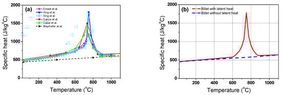 Chicago/Turabian StyleHwang, Joong-Ki. 2023. "Effect of Latent Heat by Phase Transformation on the Thermal Behavior of Steel Billet during Heating" Materials 16, no. 24: 7598. https://doi.org/10.3390/ma16247598