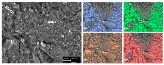 Microstructure and elemental map of reference geopolymer (H: hematite, Q: quartz).