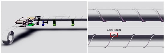 An important part of spacecraft structure, the space truss is mainly constructed by connecting a certain number of one-dimensional rods in three-dimensional space in a certain direction, and has been widely used in constructing deep space exploration bases and expanding the functions of space stations [1]. However, in current spacecraft, space truss structures are typically in the order of 10–1000 m in size for on-orbit operation [2,3]. Future space exploration will require large, lightweight, high-performing and cost-effective space trusses, such as in-orbit service platforms, which will reach geometric dimensions of 0.1–10 km when they are completed [4,5]. Obviously, the existing methods of deployment and assembly on orbit are very limited [6,7], and new ways of building are urgently needed. The use of various space manufacturing technologies, including on-orbit additive manufacturing [8,9] and on-orbit welding [10,11], to produce the rods is one of the effective ways to solve the bottleneck problem of large space trusses on orbit. In this paper, an on-orbit cold forming manufacturing technology is proposed for the production of space truss rods, which mainly uses small cold roll forming machines to coil the raw material into rods to realize on-orbit manufacturing. The method is simple in principle, easy to implement, and does not need to take into account a number of complex problems, such as the suspension of molten droplets in microgravity and solidification in space [2], and is expected to provide a new way of manufacturing truss rods on orbit.
