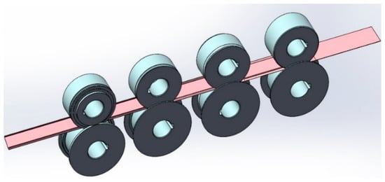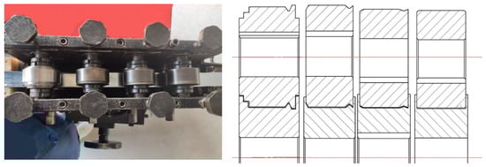 According to the simulation results, the cold forming equipment was prepared with a roll base diameter of 70 mm, roll spacings of 100 mm and roll gaps with a self-correcting function. The physical equipment is shown in Figure 18.
