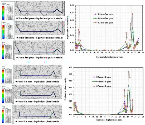 3.1.1. Influence of Different Roll Gap on Strip Stress–Strain during Each Forming Pass