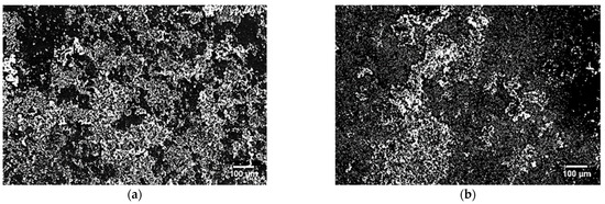 In the material obtained after etching, relatively clear grain boundaries are visible (image analysis). Compared to the work presented by Heidari L. et al., in which the hot powder forging and binder-assisted extrusion methods were used, sintering aid porosity and precipitations were observed after etching [23]. The grain size in the material obtained in this paper is smaller compared to the nickel-free austenitic stainless steel presented by Chao et al. [24]. However, in the research work by Chao et al., [24] the method of melting in an argon and nitrogen mixture was used to obtain nickel-free stainless steel, and then the obtained material was treated at 1180 °C (1453 K), hot-rolled, and cooled to room temperature in air. Despite the different methods of stainless steel preparation, the advantages of the PM manufacturing route in terms of the microstructure refining of the steel can be emphasised.
