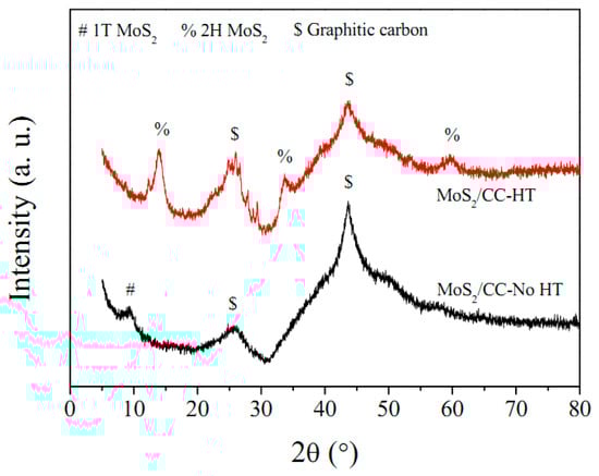 XRD patterns of MoS2/CC-HT and MoS2/CC-No HT.