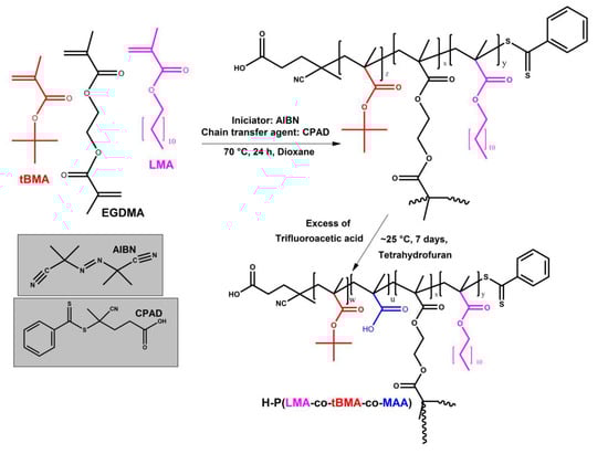2.2. Preparation of H-P(LMA-co-tBMA-co-MAA) Copolymers