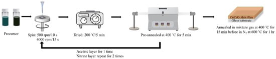 2.2. Preparation of CuCrO2 Thin Films by Spin Coating