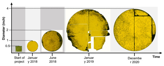 Evolution of diameters for bulk 3C-SiC crystals grown by sublimation growth during CHALLENGE project with indicated timeline. With permission from [145].