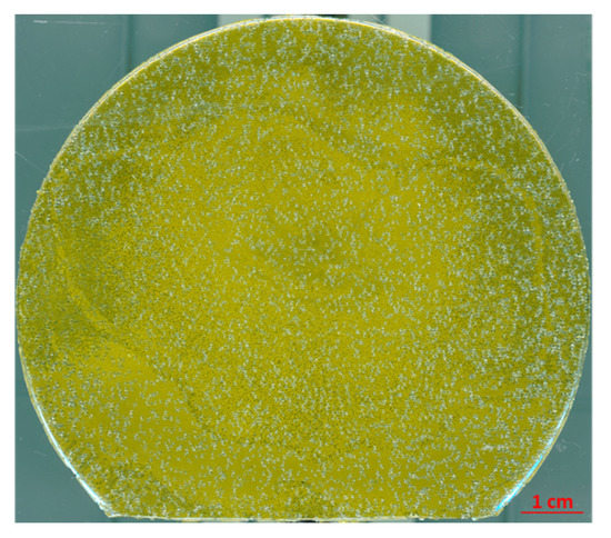High resolution scan of free-standing 3C-SiC crystal grown by CS PVT on homoepitaxial seeding layer with a diameter of 92 mm and a thickness of 650 µm. With permission from [148].