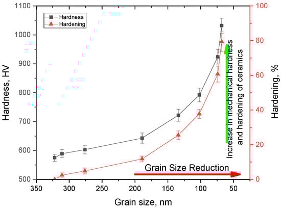 Results of changes in hardness and hardening of ceramics with a decrease in the grain size.