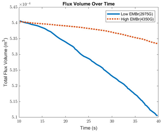 High EMBr strength (Case 1) vs. low EMBr strength (Case 2) flux volume comparison.