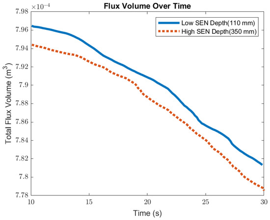 Low SEN depth (Case 4) vs. high SEN depth (Case 4) flux volume comparison.