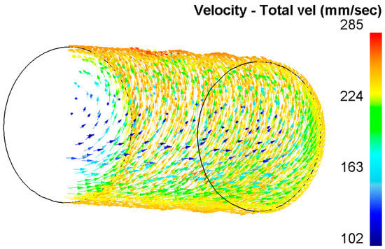 Figure 3), it was found that the distribution of this parameter has a ring type. In all cross-sections, there are clear ring zones of strain development. At the first pass, when reduction was 1.5 mm per pass, the difference of strain values between the center and surface is high: surface layers are processed up to 6.5, while central layers remain almost unprocessed (strain level 1.8 ÷ 2.0). The metal flows vectors characterization and its distribution in deformation zone after 37–30 mm radial shear rolling processing are visualized in