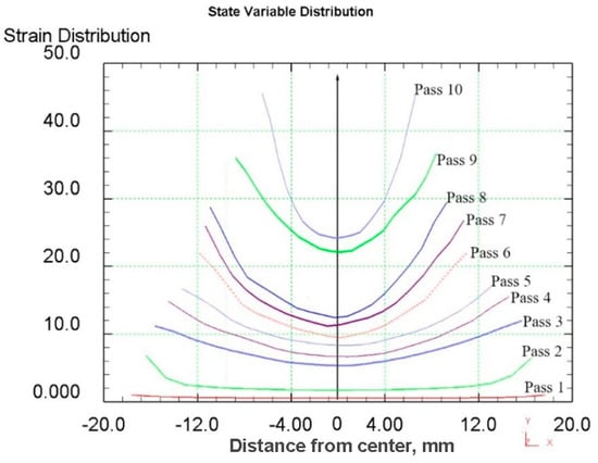Based on the total strain cross-section distribution graphs by the rolling passes in