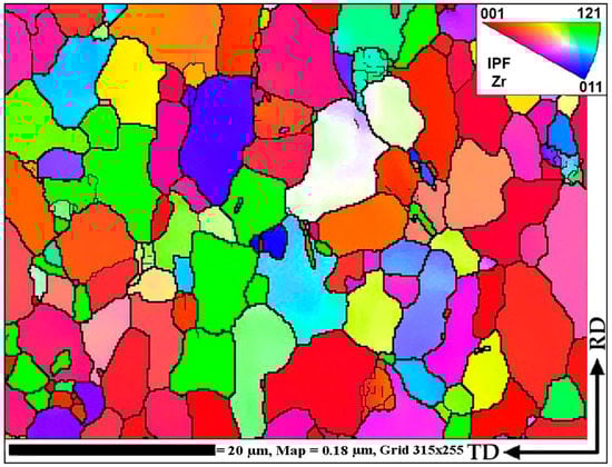 Sample preparation of zirconium samples for both methods of electron microscopy was carried out by electrolytic polishing on Struers equipment: TenuPol-5 for TEM and LectroPol-5 for SEM/EBSD. In both cases, A3 electrolytes recommended by the manufacturer were used (perchloric acid—78 mL, distilled water 90 mL, ethanol 730 mL, and butoxyethanol 100 mL). In both cases, forced cooling of the electrolyte was used with the help of additionally built-in Julabo 600F cryostats in the Struers setups. Cooling of the electrolyte is usually not separately described in sample preparation protocols, but it has a very strong positive effect, especially for the TEM sample. Based on the works [