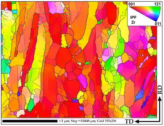 - Jiang, L. Texture, Microstructure and mechanical properties of equiaxed ultrafine-grained Zr fabricated by accumulative roll bonding. Acta. Mater. 2008, 56, 1228–1242. [Google Scholar] [CrossRef]