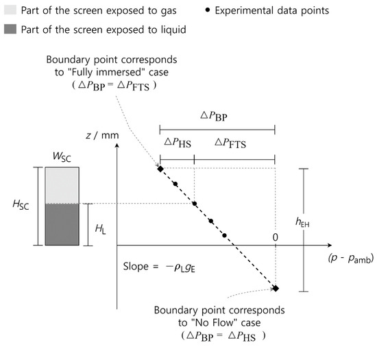 can be calculated with the help of the breakthrough height from the phase-separation experiment using Equation (7) and is known from the bubble point test. The flow-through-screen pressure drop can be calculated from Equation (9). Consequently, the permeability can be obtained using Equation (8).