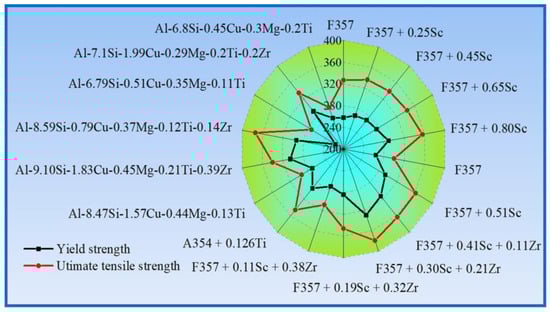 Investigation of the strength of Al–Si alloy. This figure is reproduced based on [38,55,61,62,63,64].