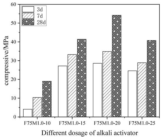 The effects of different alkali activators content on the compressive strength of the geopolymer.