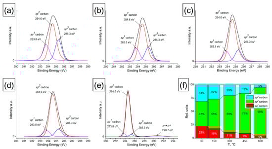 3.1.2. XPS of Heat-Treated Amorphous Carbon
