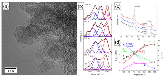 - The approval of the 7-peak model for fitting the Raman spectra of various NCMs—AC, heated ND, CB Printex-XE2-B and MWCNT—also showed good agreement between the Raman data and data obtained with independent methods, such as TEM, XPS and XRD in the current work and the optical properties of the heat-treated NDs and simulation of the ND graphitization process in our previous works.