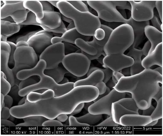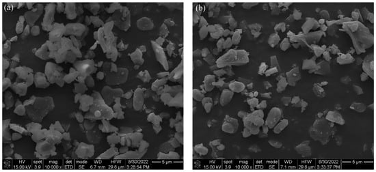 The SEM image of the original unmilled Al2O3 powder is shown in Figure 3. It can be seen that the grains of the unmilled Al2O3 micropowder present an irregular shape, with an average particle size of around 7 µm.