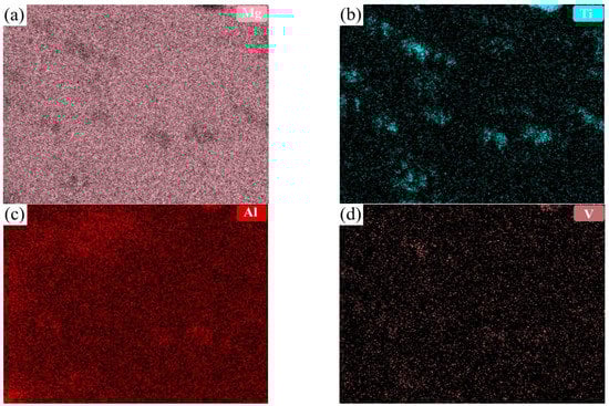 X-ray maps of (a) Mg, (b) Ti, (c) Al, and (d) V in Figure 2b.