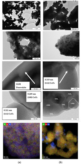 - Isupova, L.A.; Obyskalova, E.A.; Rogov, V.A.; Tsybulya, S.V.; Dovlitova, L.S.; Burgina, E.B.; Ischenko, A.V.; Zaikovskii, V.I.; Sadykov, V.A.; Orlovskaya, N. Doped ceria—LaMeO3 (Me = Mn, Fe, Co) nanocomposites: Synthesis via mechanochemical activation route and properties. Mater. Res. Soc. Symp. Proc. 2006, 885E, 0885-A03-04.1. [Google Scholar]