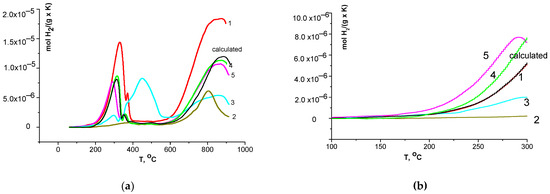 | Sample | Total Consumption Up to 900 °C, mol H2 g−1 | Consumption in the First Peak, mol H2 g−1 | First Peak Temperature Range, °C |