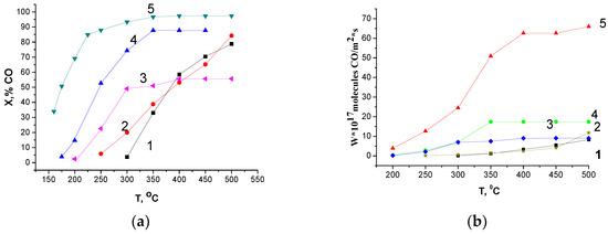3.4. Catalytic Activity in CO and CH4 Oxidation