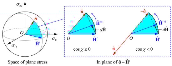 Considering that the plastic deformation of metals is driven by the stress deviator s, it is still necessary to discuss the variation of loading path based on stress deviator when analyzing plastic deformation processes under plane stress conditions. The second-order deviatoric tensors, s and h, corresponding to the stress vector and the microstructure vector , can be obtained through the following two equations, respectively.