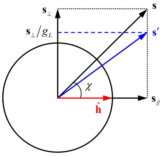 The evolution of is shown schematically in Figure 1. rotates in the plane determined by and , and finally, takes the direction of or .