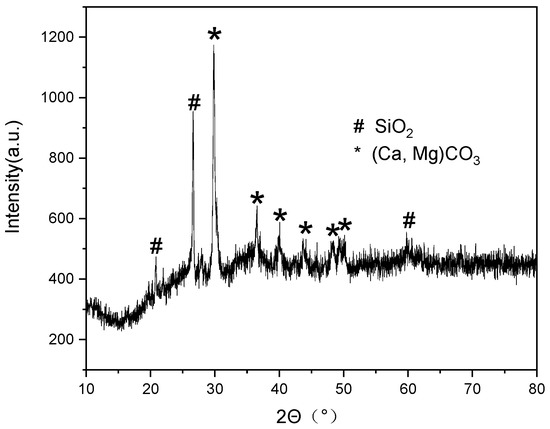 Figure 13 displayed the XRD results on the surface, which showed that the coagula was composed of calcite [(Ca, Mg)CO3] and quartz (SiO2). This achieved mutual validation with μ-Raman analysis.