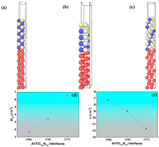 Figure 7d, it can be seen that the interfacial energy is decreased with increasing the index of the lattice plane, and the Al/TiC