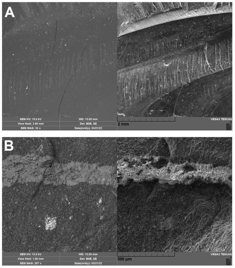 Detailed backscattered-electron (BSE) and secondary-electron (SE) images of elite shungite (A) and black (raw) shungite (B) stones with the obvious presence of a quartz vein and pyrite druses.