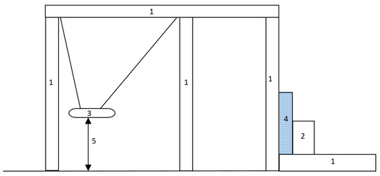 Pendulum diagram: 1—pendulum, 2—stabilizing weight, 3—drop weight, 4—specimen, 5—height.