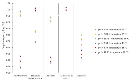 Removal of Phosphorus with the Use of Marl and Travertine and Their Thermally Modified Forms—Factors Affecting the Sorption Capacity of Materials and the Kinetics of the Sorption Process