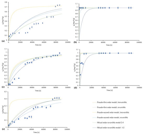 | Pseudo-first-order model, irreversible | R2 | [-] | 0.9703 | 0.8436 | 0.7240 | 0.3092 | 0.8079 |