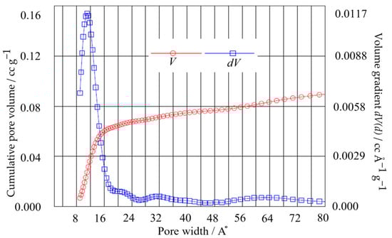 BET pore volume distribution of bc−GP from desorption isotherms using the DFT method.