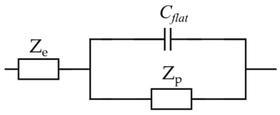 Furthermore, based on Lasia’s assumption, the electrolyte solution impedance is only described by a resistor. However, in the case of a gel electrolyte, such an assumption does not portray an accurate description of the electrolyte impedance. Therefore, a representative impedance element, , for the electrolyte was considered (Figure 8), which will be discussed in detail in the following section. Each element in the proposed EC model for the electrode will now be defined and associated with the material properties. The total impedance of the porous electrode EC model is given by the following equation [35]: