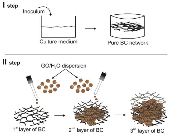 - Rashidian, E.; Babaeipour, V.; Khodamoradi, N.; Omidi, M. Synthesis and characterization of bacterial cellulose/graphene oxide nano-biocomposites. Polym. Compos. 2021, 42, 1–9. [Google Scholar] [CrossRef]