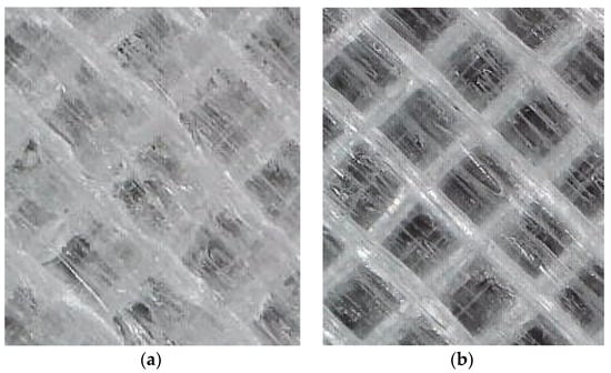 The filament humidity deteriorated the surface quality of the printed samples. The samples printed from a low-moisture filament had a homogeneous structure and low roughness. The samples printed from a high-moisture material were characterized by high surface roughness and clear traces of filament paths [31]. This is illustrated in Figure 9.
